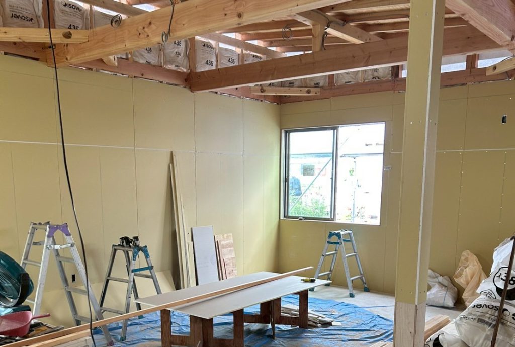 壁に石膏ボード貼り