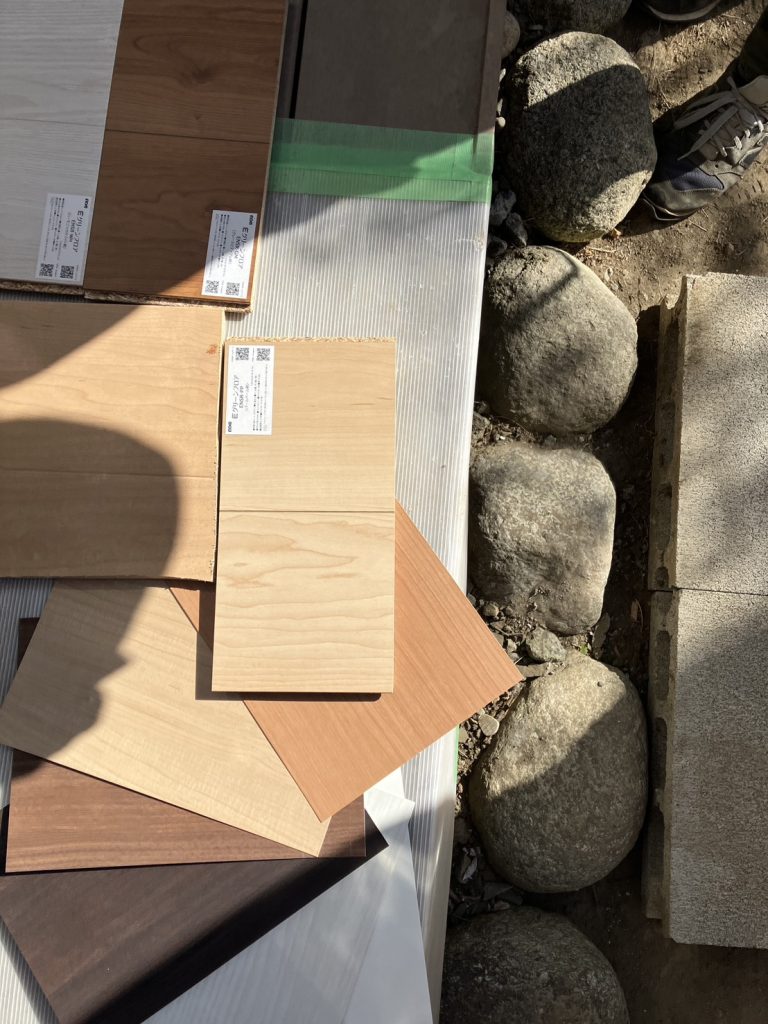 下の写真は床材のサンプルです