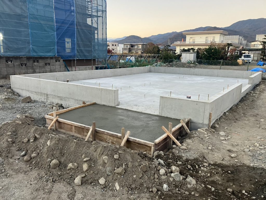 立ち上がり部分にコンクリートを流し込みました